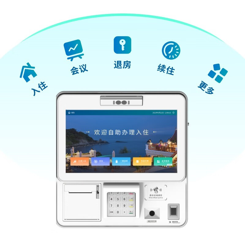 酒店自助入住機(jī)無論是從專業(yè)性、穩(wěn)定性、成熟性等方面,在行業(yè)內(nèi)都有充足優(yōu)勢(shì)。 我們的酒店自助入住機(jī)使用起來方便簡(jiǎn)單,能夠?qū)崿F(xiàn)線上及現(xiàn)場(chǎng)訂房、自助付款、續(xù)住及辦理退房等,當(dāng)中人臉認(rèn)證系統(tǒng)和公安接口可更高確保顧客入住私密性。