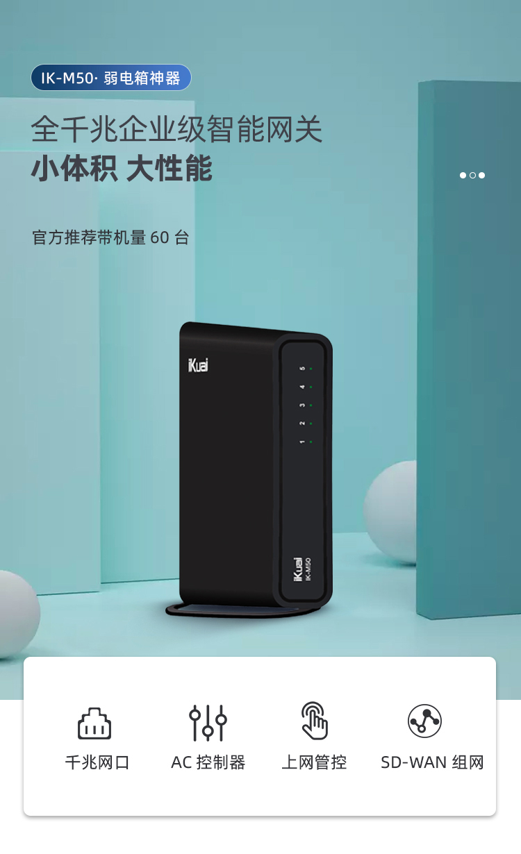 愛快(iKuai)IK-M50 全千兆企業(yè)級(jí)流控智能有線網(wǎng)關(guān)路由 多WAN/AC控制器/行為管理/帶寬疊加/弱電箱神器