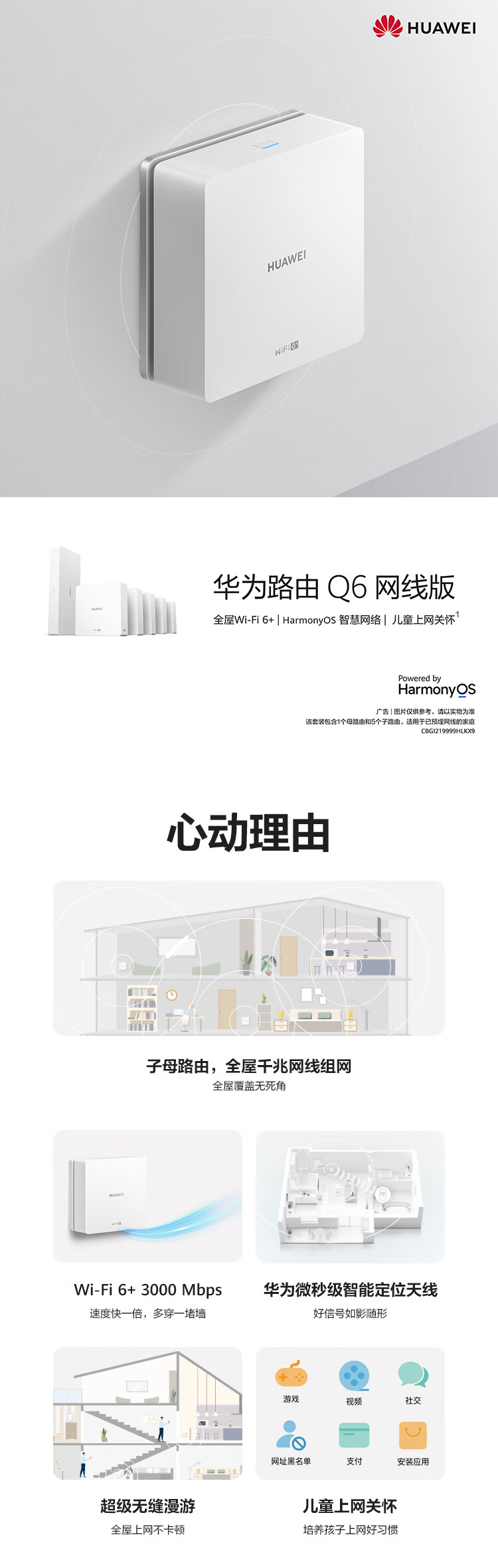 華為(HUAWEI)路由器Q6 網(wǎng)線版 (1母5子套裝)子母路由 全屋千兆網(wǎng)線組網(wǎng) Wi-Fi6+ 3000Mbps