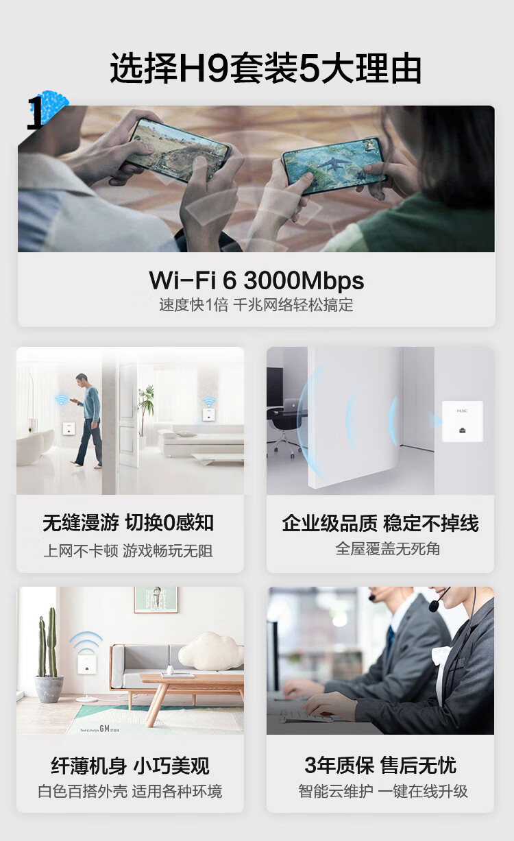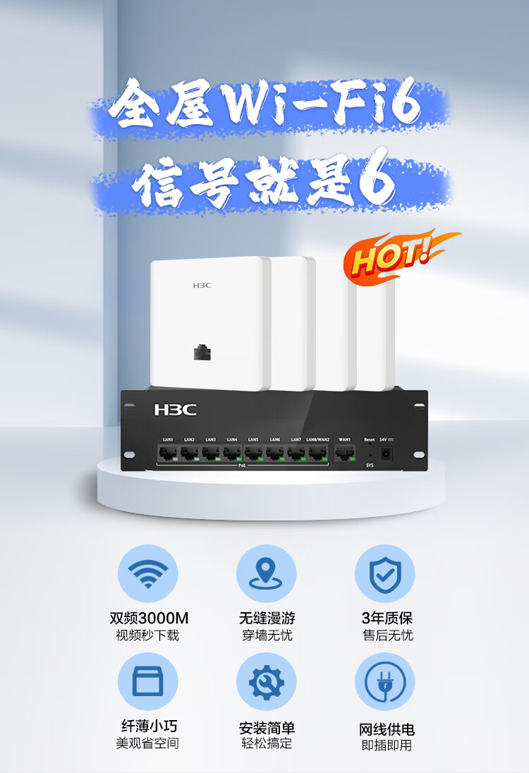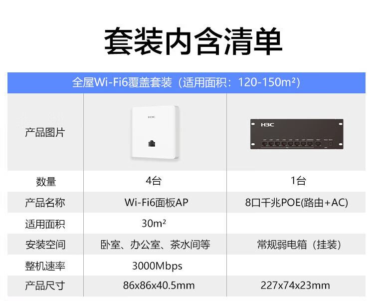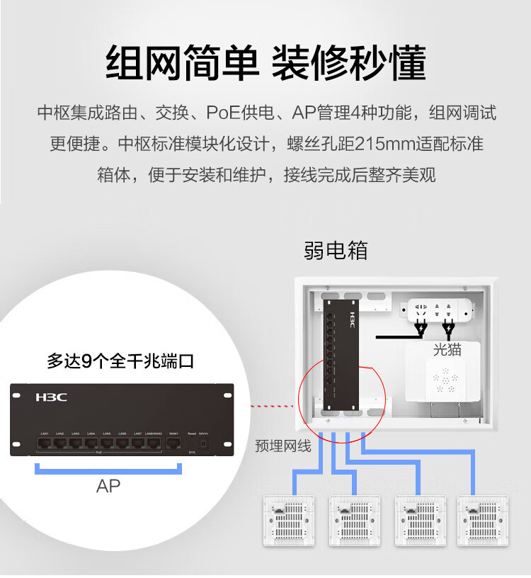 新華三(H3C)全屋WiFi套裝無線面板AP 5G智慧家庭酒店別墅大戶型千兆網(wǎng)絡(luò)覆蓋 4個面板AP+8口PoE路由器